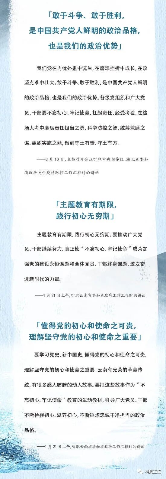習(xí)近平給黨員干部的15句箴言淄博科泉工貿(mào)有限公司認(rèn)真學(xué)習(xí)了習(xí)近平給黨員干部的15句箴言,公司始終保持堅(jiān)持黨的路線和方針不動(dòng)搖,聽黨的指揮,跟黨走的堅(jiān)定信念,為社會(huì)積極做出自己的貢獻(xiàn)。 上一篇了解淄博科泉工貿(mào)有限公司下一篇瀝青的種類 |